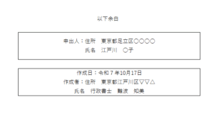 その作成者の上に、同じように四角で囲んで「申出人」として住所と名前を記載すればよいのです。